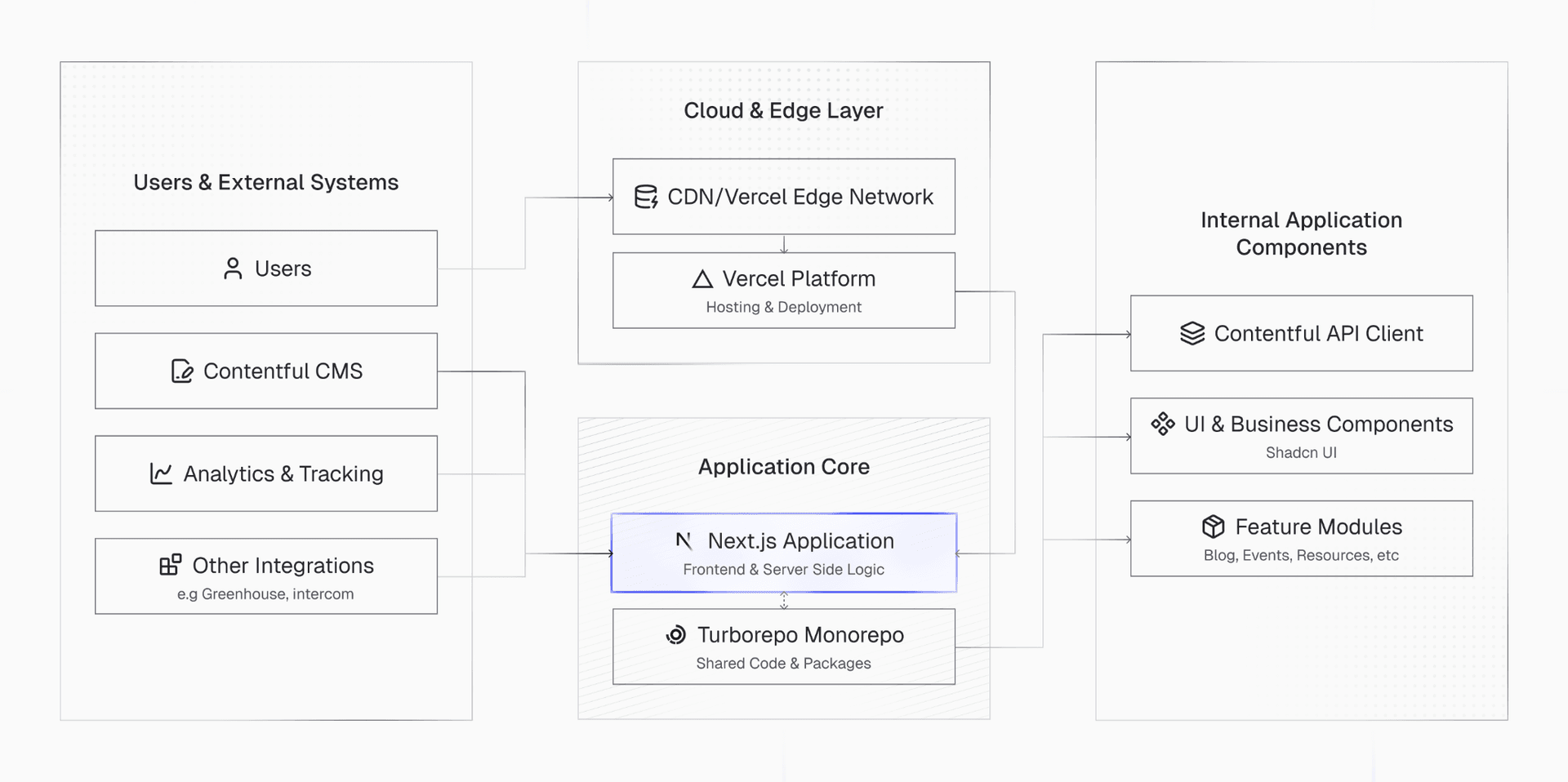 To modernize their marketing site, they partnered with Roboto Studio to migrate off their legacy solution and outdated version of Next.js. The goal: simplify the architecture, consolidate siloed repos, and bring content and form management into one unified system.