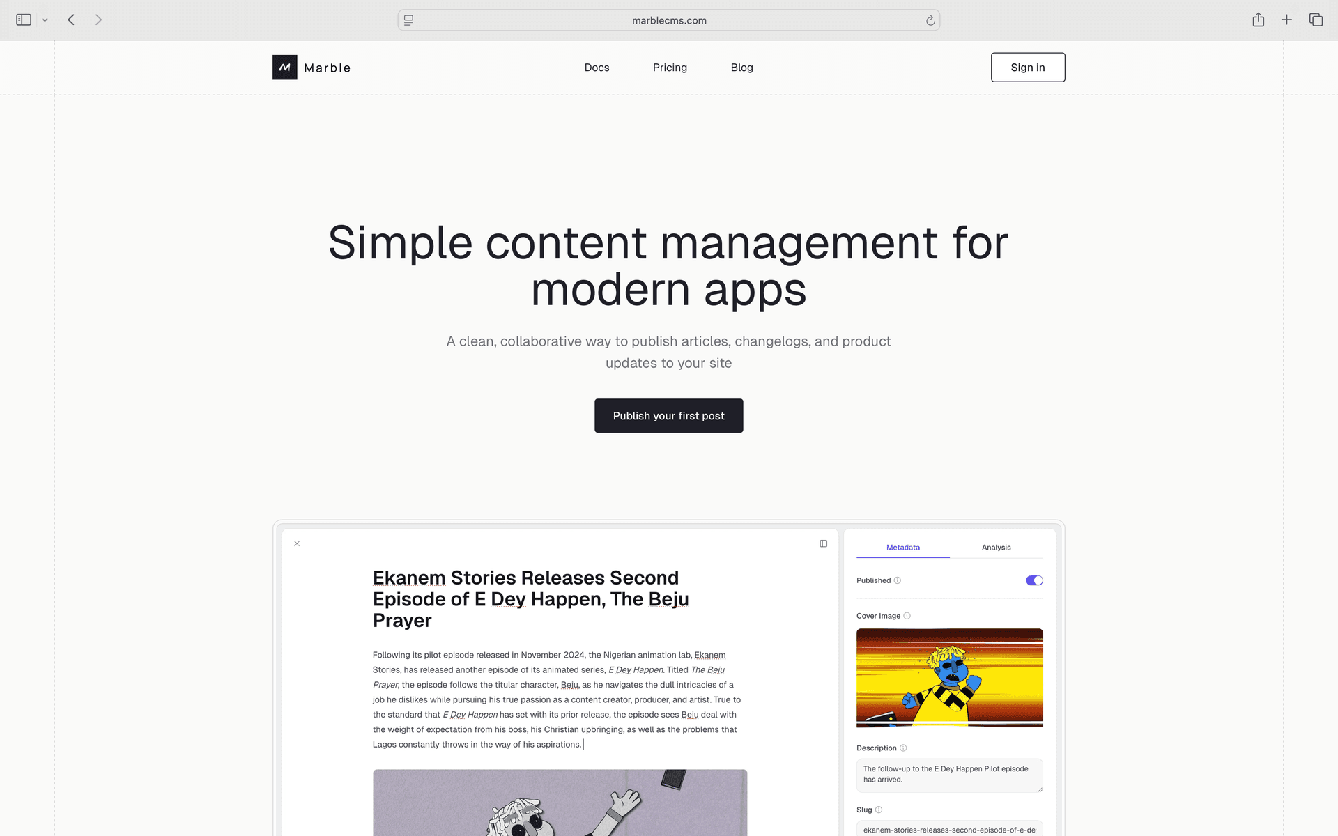 Marble is a simple, flexible headless CMS built to give non-technical users and developers an easy way to manage content without heavy tooling. Since launch, it has grown to 480+ signups, 20 contributors, several sponsor partnerships, early YC-backed adopters, and its first paying users.