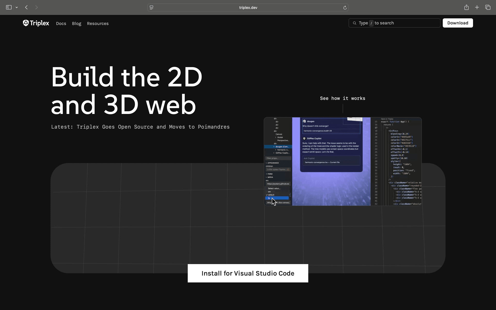 Triplex is a newly open-sourced framework that lets developers visually explore and edit anything built as a React component, seamlessly bridging 2D and 3D in a way no other tool offers. It’s already used by a few hundred people each week and is gaining attention for its unique, exciting approach to interactive UI development.