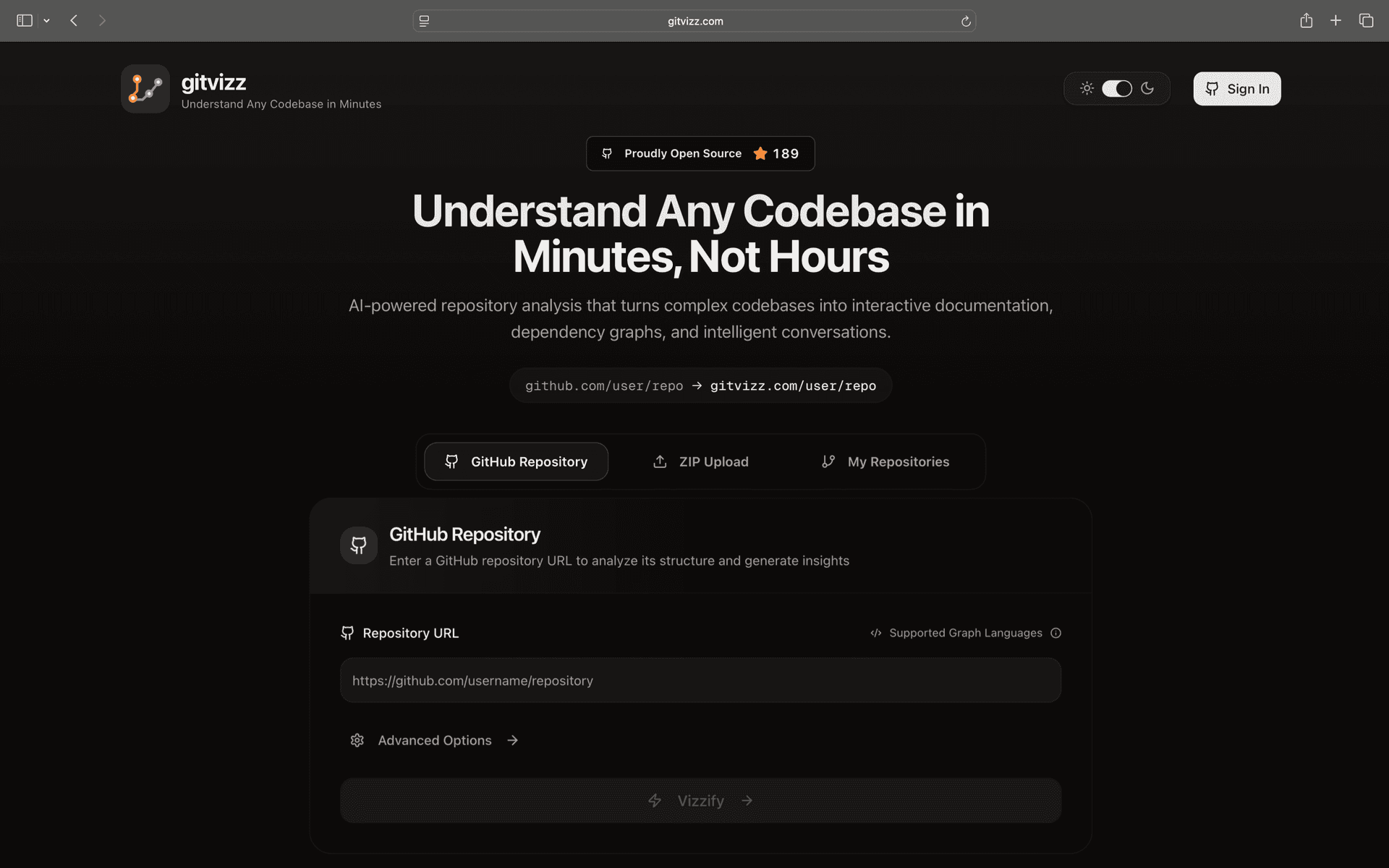 Gitvizz instantly transforms any GitHub repository into an interactive visual graph, helping developers understand large codebases by mapping how files, functions, and modules connect. The project has already gained strong early traction with 100+ GitHub stars, 200+ active users, and a growing community drawn to its powerful graph engine and intuitive code-comprehension experience.