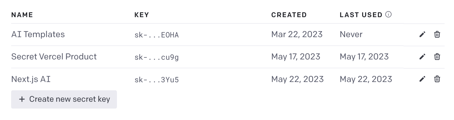 Click on Create new secret key. Copy the generated API key securely.